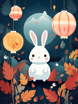 > 中国风渐变灯笼下的可爱元宵背景素材