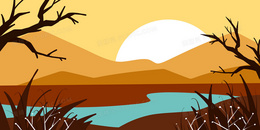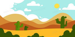 > 暖色夏日沙漠剪纸风卡通扁平手绘插画背景