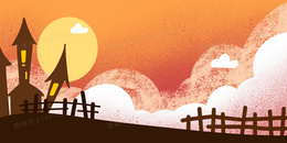 红色城堡万圣节卡通扁平手绘插画背景素材