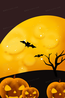蓝色月亮夜晚万圣节诡异卡通扁平手绘插画背景