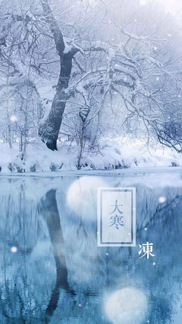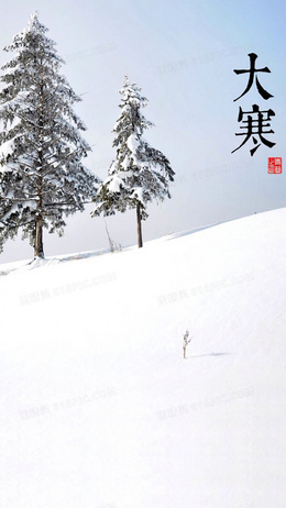 手绘红墙冬季寒冷大寒小寒雪景背景