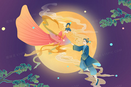 创意国潮风七夕牛郎织女鹊桥相会背景