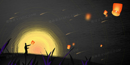 创意手绘线圈画中秋节夜晚赏月祈福背景