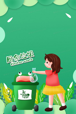 绿色剪纸垃圾分类厨余垃圾背景