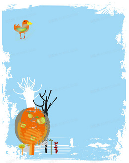 矢量文艺清新手绘水彩小鸟树叶边框背景