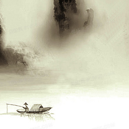 淡雅水墨团扇背景图檀木扇骨透出金色山脉纹理