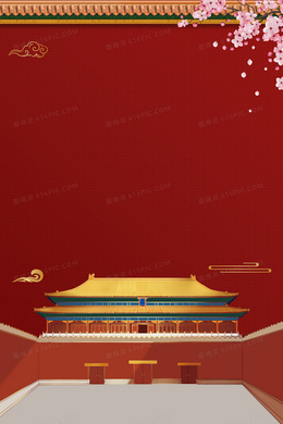 红色质感大气宫殿城墙背景