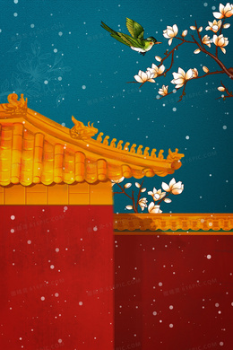 冬季梅花雪景宫殿古风背景