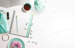 薄荷绿文艺素材简约桌面咖啡甜甜圈家居背景