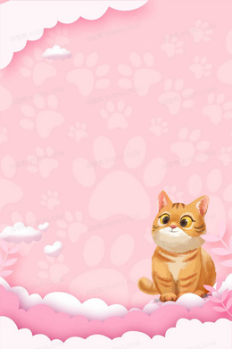 粉色卡通猫咪插画背景