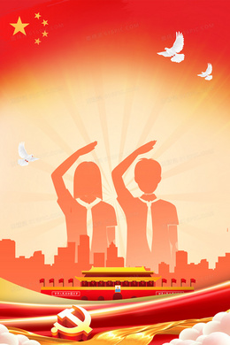 > 党建党政风少先队员剪影天安门华表少先队背景