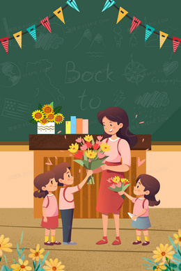 教师节献花卡通背景