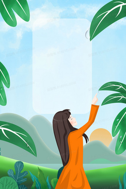 秋天小清新文艺卡通女孩立秋二十四节气背景
