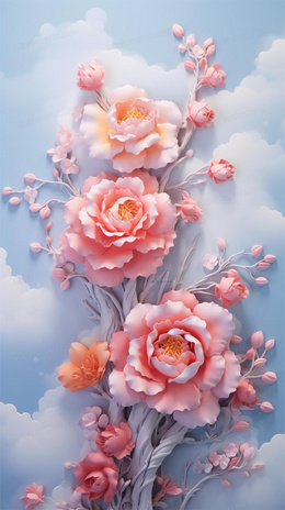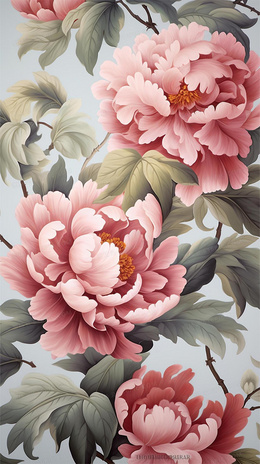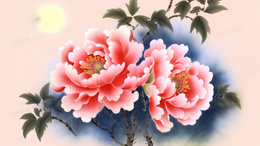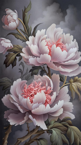 > 中国风花开富贵牡丹花插画