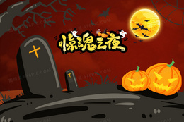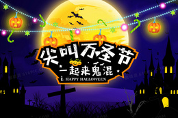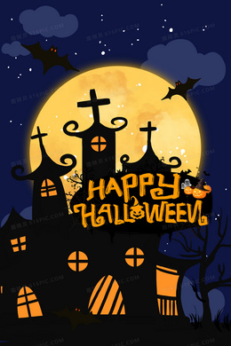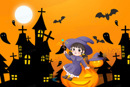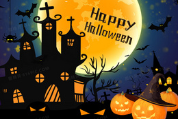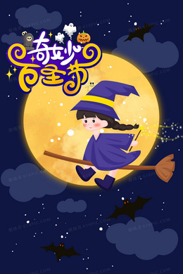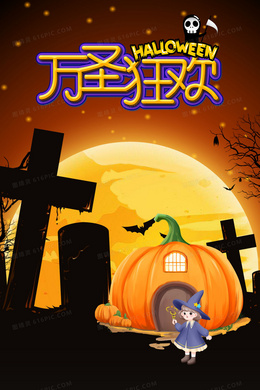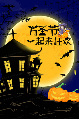 万圣节女巫的南瓜屋卡通节日宣传插画