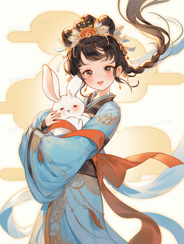 古风少女中秋节抱着兔子嫦娥仙子创意插画
