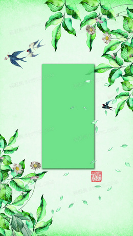 绿色小清新水彩画春天燕子绿叶手绘背景图