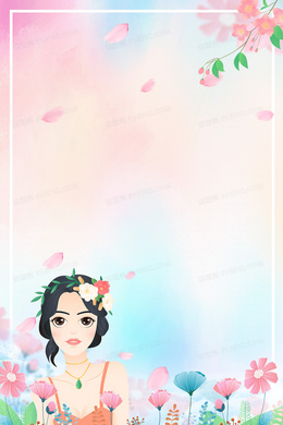 妇女节女神节梦幻鲜花H5海报背景分层下载
