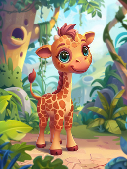 当前位置: 图精灵 > 背景图库 > 插画 > 森林中的大眼睛长颈鹿插画