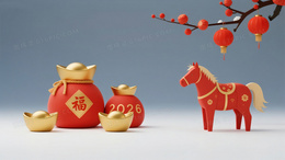 金元宝福袋立体小马马年创意背景图