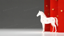 春节白色剪纸马形象简约新年背景图