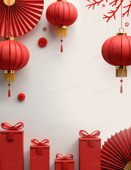 喜庆节日灯笼礼盒白云背景
