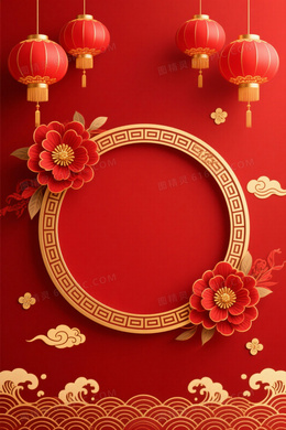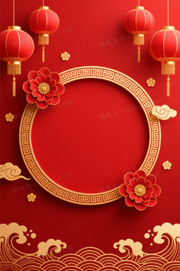 深红喜庆中国风祥云灯笼背景