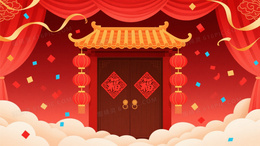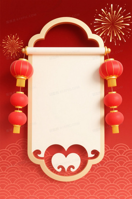 深红喜庆中国风卷轴背景