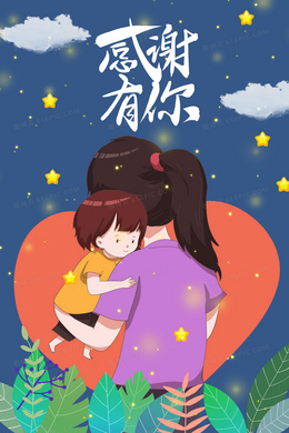 感恩节母女拥抱插画