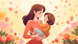 云团里母亲抱着孩子插画