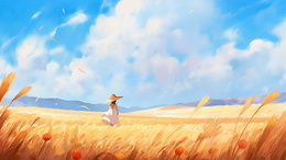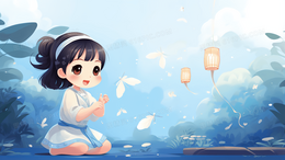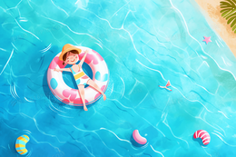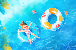卡通风炎炎夏日一个小女孩开心的躺在游泳圈上插画