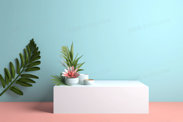 唯美清新马卡龙色系蓝色背景电商展台C4D模型背景