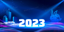 蓝色2023年会兔年年会背景