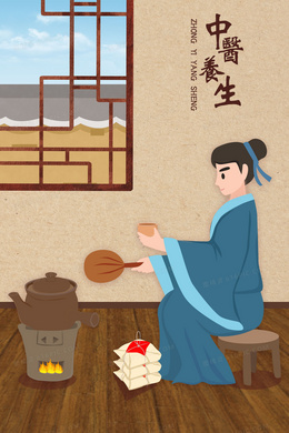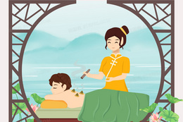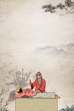 > 水墨画中国风中医养生拔罐理疗治疗手绘插画