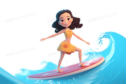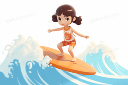 在冲浪板上做下蹲动作的可爱女孩C4D模型