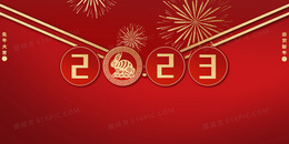 红色剪纸风2023兔子背景