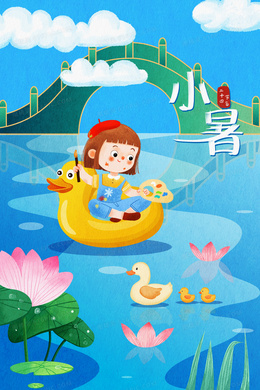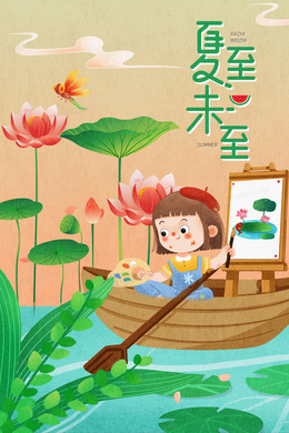 夏天女孩在西瓜棚吃瓜解暑创意插画