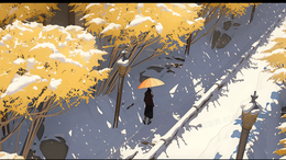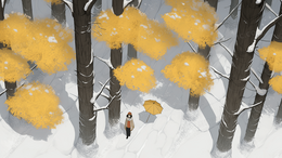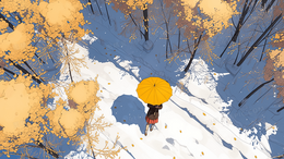 雪中打着黄伞行走的人插画