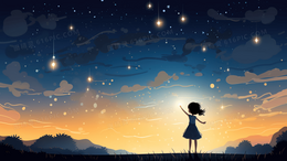 > 唯美梦幻星空下的少女插画