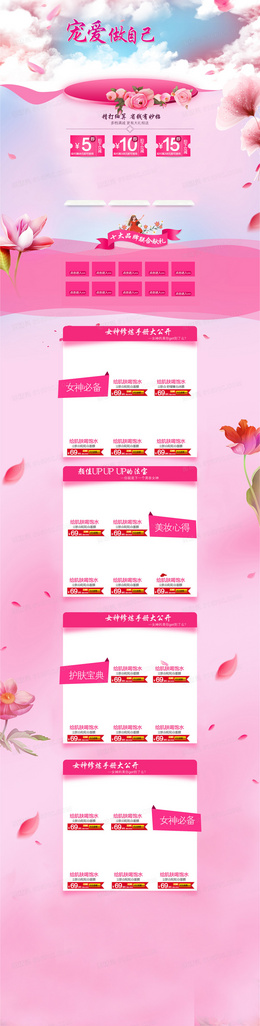 粉色花瓣浪漫情人节化妆品店铺首页背景