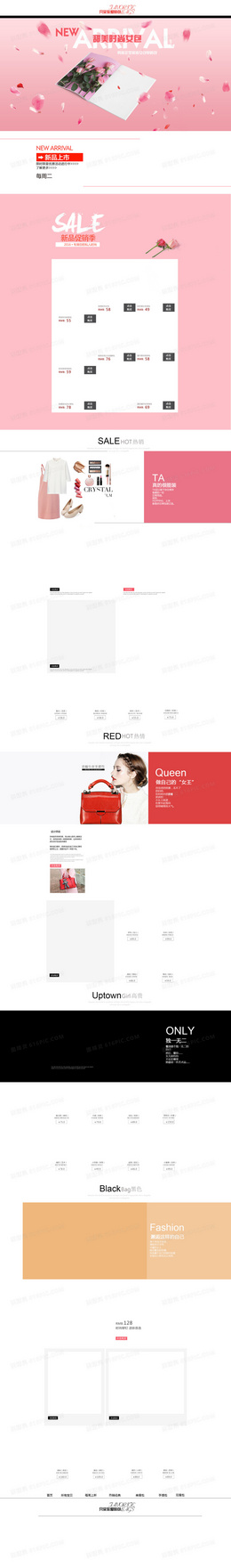 粉色花瓣浪漫女包店铺首页背景