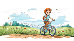 山地户外骑行运动健身风景插画