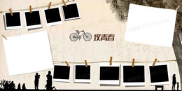 怀旧照片墙岁月如歌铁轨自行车胶片海报背景