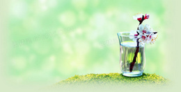 矢量复古绿色清新花朵背景