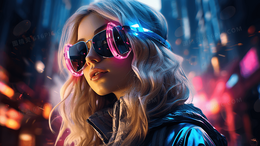 赛博朋克风格戴着VR眼镜的酷炫女孩创意图片