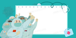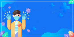 蓝色手绘卡通医疗疫情防控提示医疗背景