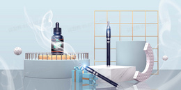 蓝色电子烟促销展台创意合成背景