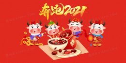 红色大气2021牛年牛转乾坤背景