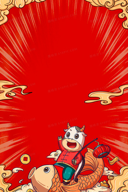 质感国潮喜庆牛年背景