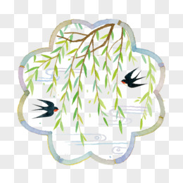 柳枝边框和小燕子春天免抠元素